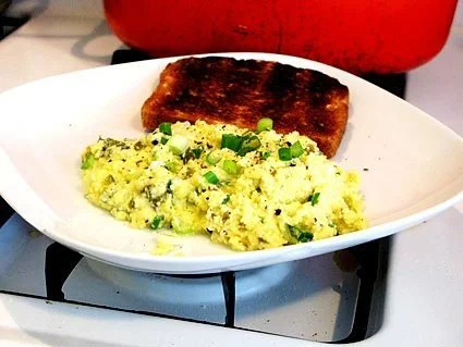 When they’re just set but not dry, scoop them on to a plate. Toast some bread and serve!