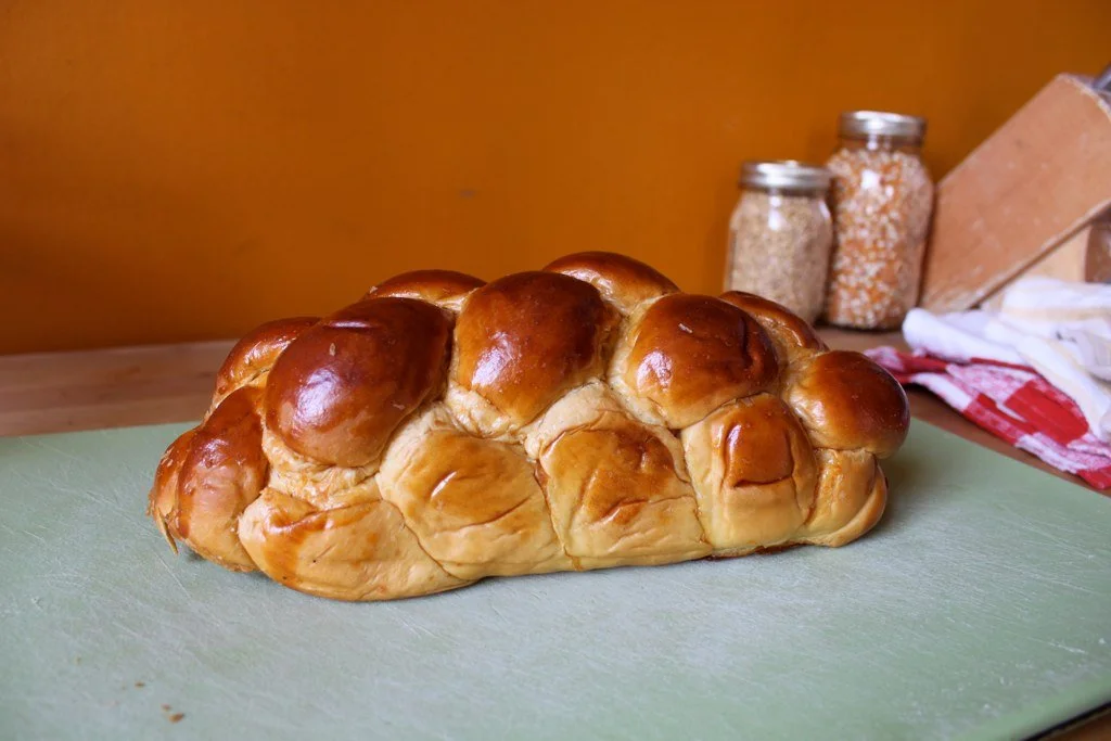 Challah, as I learned in Hebrew school, is a Jewish bread that’s made with lots of eggs (similar to a brioche; you could also do this recipe with brioche). When you pronounce it, make sure to pronounce the “Ch” as if you’re about to hock up a loogie. Overdo it for comic effect.