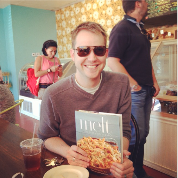 Every time I make a mac and cheese I declare it the best I’ve ever made. There’s a reason for that. I grew up hating mac and cheese (also lasagna) because my dad hated cheese. So if a friend’s mom made it for dinner, I’d move it around on my plate and feign a sudden bout of appendicitis. It wasn’t until I got older and started eating cheese with my cheese-loving friends that I came back around to mac. As I started making it myself, and understood what it really was–a white sauce with lots of cheese melted into it, spread over noodles and baked–I could appreciate it as a way to put obscene amounts of cheese on a plate and call it dinner. I’ve made many an obscene mac and cheese since then (one with three cups of cream, one with blue cheese, Gruyere and cheddar) but the most obscene–and delicious–of all may be the one I just made from my friend Garrett McCord’s new cookbook Melt. It’s a mac and cheese for the ages.