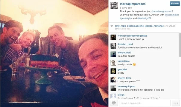 Back in the States, I rolled up my sleeves in July and made a cake based on my favorite cookie of all time (the rainbow cookie, duh). That cake caused quite a stir online–especially Instagram–where one of my followers claiming to be TV’s Jim Parsons said something like, “Wow!” I thought to myself: “Who is this Jim Parsons imposter and why is he commenting on my Rainbow Cookie Cake?” Then, a few days later, this image popped up: