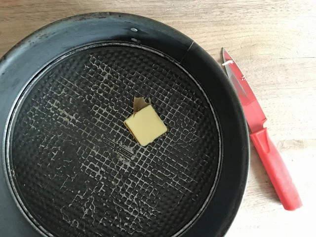 11 AM Back home, I carry three heavy bags of groceries in (I had to park around the block because Craig’s in New York and he left his car in our one parking spot), unpack them, and then put a tablespoon of butter in the springform pan to come to room temperature so I can butter the pan with it later.