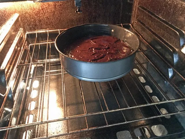12:45 PM Cake goes into the oven.