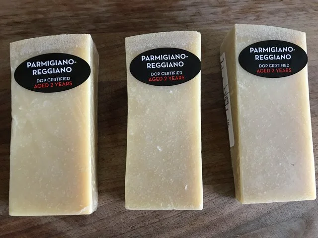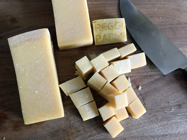 [Note: see the picture above? When buying Parmesan, make sure to buy the wedges that only have the rind at the top. Sometimes you’ll get screwed if the rind goes around in an L-shape, you get less usable Parmesan that way. I hope that made sense.]