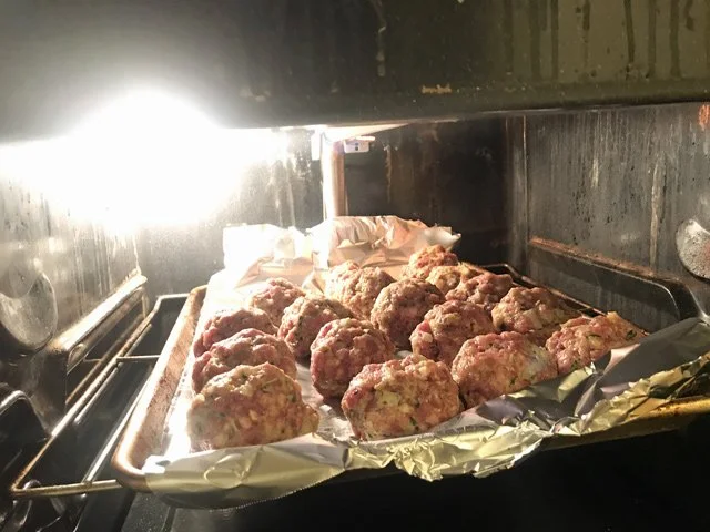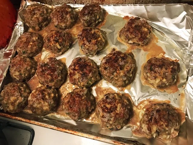 OK, now the meatball-making began in earnest, with only an hour to go before guests arrived. I cut it a little close.