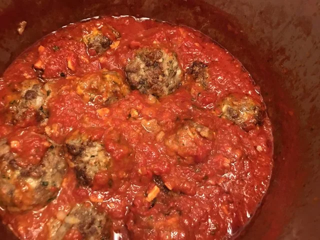 7:21 PM Meatballs out of the broiler and into the sauce.