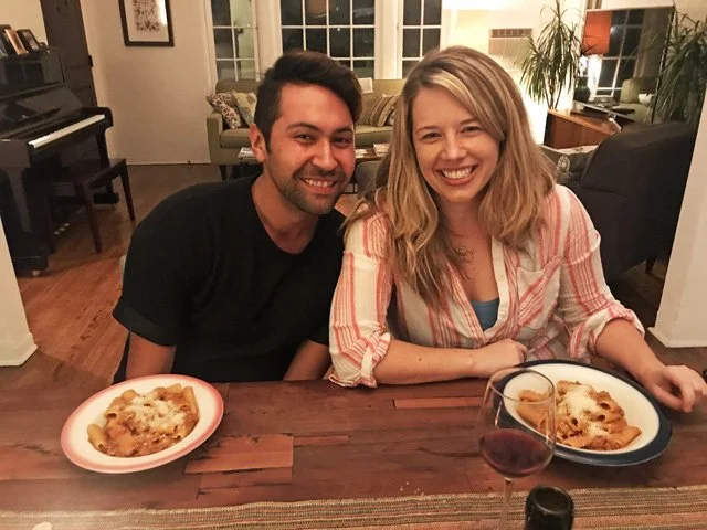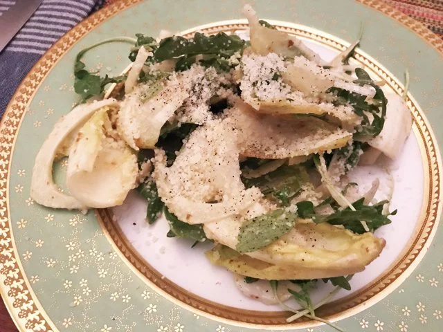 That’s Marcos with his friend Katherine Spiers, the food editor at L.A. Weekly, who I was excited to meet and cook for on this lovely Friday evening. First, I served them a salad of endive and fennel dressed with a Medjool date/anchovy dressing from that Nancy Silverton cookbook I was raving about in the Frito Pie post.