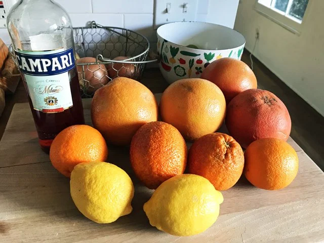Heat over low heat, stirring, until the sugar is dissolved. Set it all aside for ten minutes and then pour in the remaining juice, 1/3 cup of Campari, stir, cover, and chill for at least an hour in the fridge.
