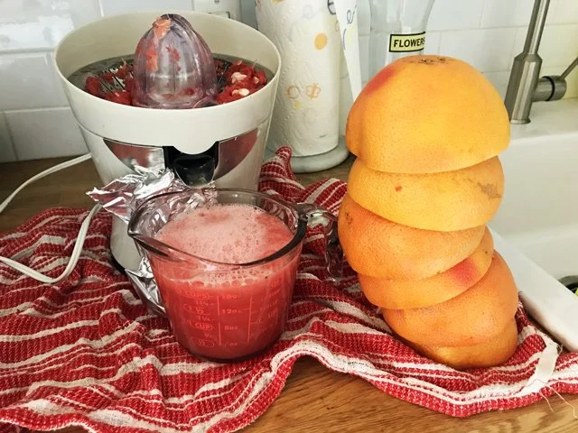 My only twist here to Ottolenghi’s recipe is that I used blood oranges instead of regular oranges. The supermarket had them and I figured the bright red color and the unique blood orange flavor would contribute something unique; but if you can only find regular oranges, that’s fine too. Make sure to use ruby red grapefruits, though, that’s important.