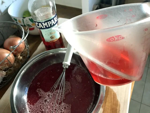 It was my friend Marcos’s birthday and I’d sussed out that he’d really enjoy a Bolognese for his birthday dinner. I’d also sussed out that he was up for going out on the town after dinner. So, in my mind, after serving a rich, heavy Bolognese, it didn’t make sense to serve a rich, heavy cake. Which is what led me to sorbet, specifically the Campari and grapefruit sorbet in Ottolenghi’s wonderful new dessert cookbook, Sweet.