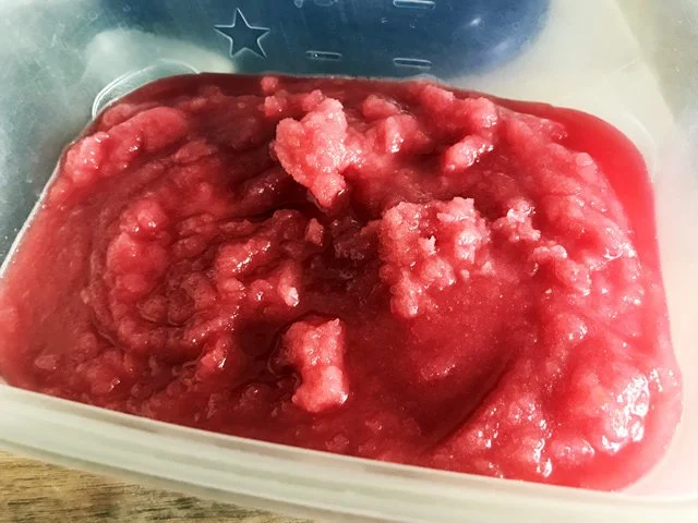Then you just transfer that to a container, cover with plastic wrap, and pop into the freezer until it’s time to serve.