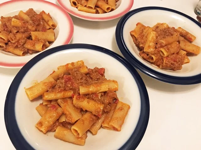 And here’s my Rigatoni Bolognese up close, Marcella’s recipe of course.