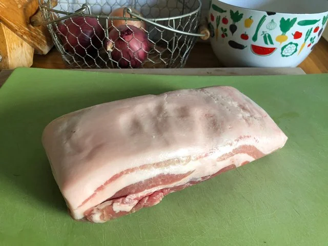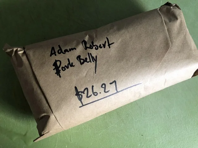 The only tricky thing with this particular recipe is tracking down the pork belly. Lucky for me, there’s a great butcher in L.A. that I mention all the time, McCall’s Meat and Fish, and I called them Saturday morning to see if they had 2 1/2 pounds of pork belly. They did and they set some aside for me, which I picked up after getting an iced New Orelans style coffee at Blue Bottle across the street. Have you ever had that? There’s chicory in it.