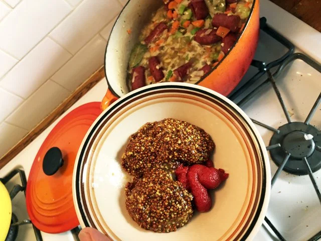 Are you ready for the secret ingredient? THREE TABLESPOONS OF WHOLE-GRAIN MUSTARD. Also tomato paste. But that mustard works wonders.