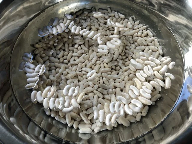 Here’s where things got dicey: you add your soaked beans and another quart of stock. Only, my pot couldn’t take another quart of stock. Take a look.
