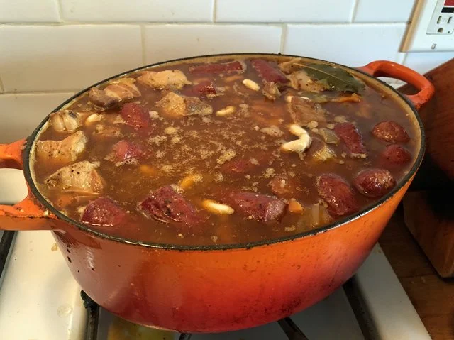 The last time (and only time) I’ve ever made cassoulet, it was a bit of a Noah’s Ark affair. There was duck, there was sausage, there was bacon. My cup, quite literally, was runneth over with meat and beans. Cassoulet is meant to be a hefty dish and, as a general rule, the bigger your cooking vessel, the better off you’ll be. This time around, I thought I was in good shape making Donald Link’s Pork Belly and Smoked Sausage Cassoulet from his Down South cookbook. There were only two meats to worry about, pork belly and smoked sausage, and only one pound of dried white beans. This time I’d have my cassoulet under control.