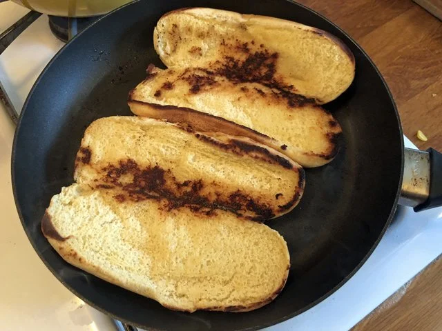 Admittedly, that picture should be the lead picture and this post should be just about that. Where the heck is the sausage? Calm down! I heated up a pan and melted some butter and toasted some buns in it.