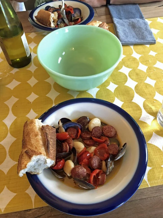 Serve with bread to soak up all that liquid (the bread’s the most important part). Also a crisp Muscadet works great here.