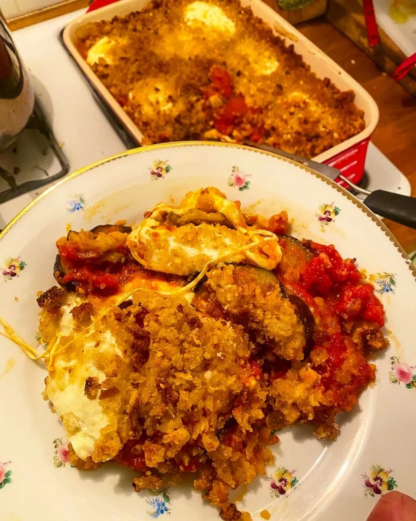 …then you do it again and top the whole thing with breadcrumbs that you cook, briefly, on the stove top with olive oil, salt, and pepper. Pop that into the oven (now at 350) and after twenty minutes, it should be bubbling and the cheese should be melted. If you’re like me, you’ll want to turn on your broiler to get it extra crispy on top. A dreamy weeknight meal, and not that hard!