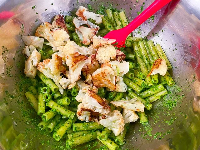 Meal Three: Ziti with Arugula Pesto and Roasted Cauliflower.
