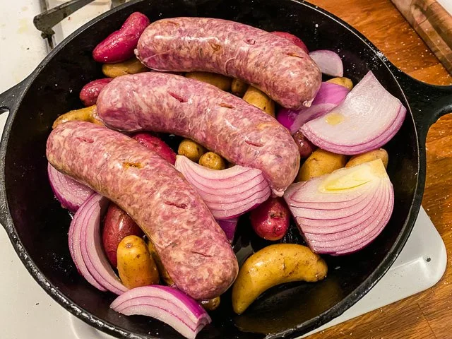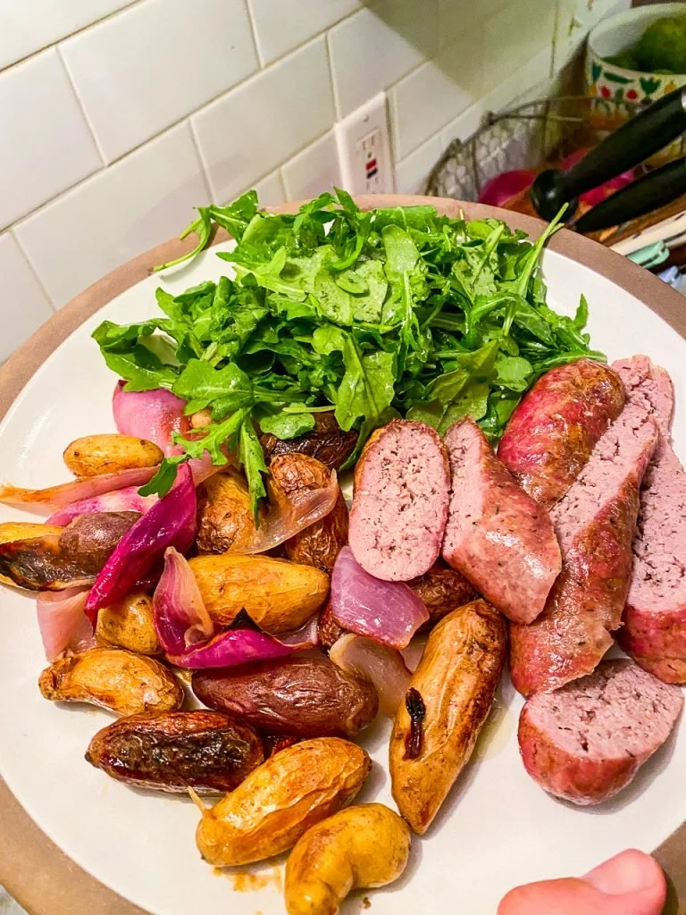 Meal Four: Roasted Sausages with Onions and Potatoes.