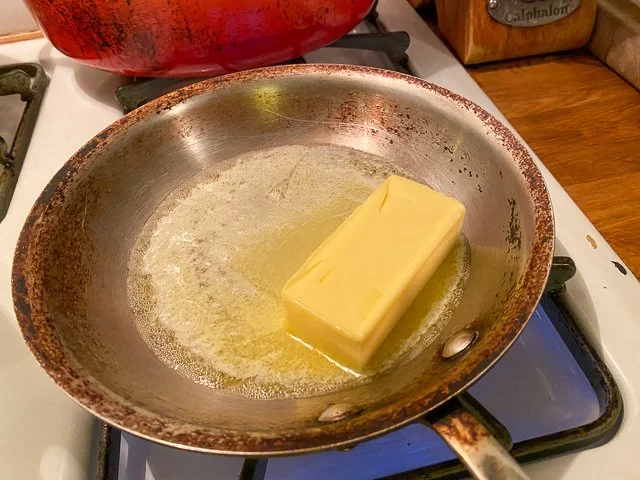 1. Heat the oven to 350 and generously coat your loaf pan with softened butter (about a tablespoon).