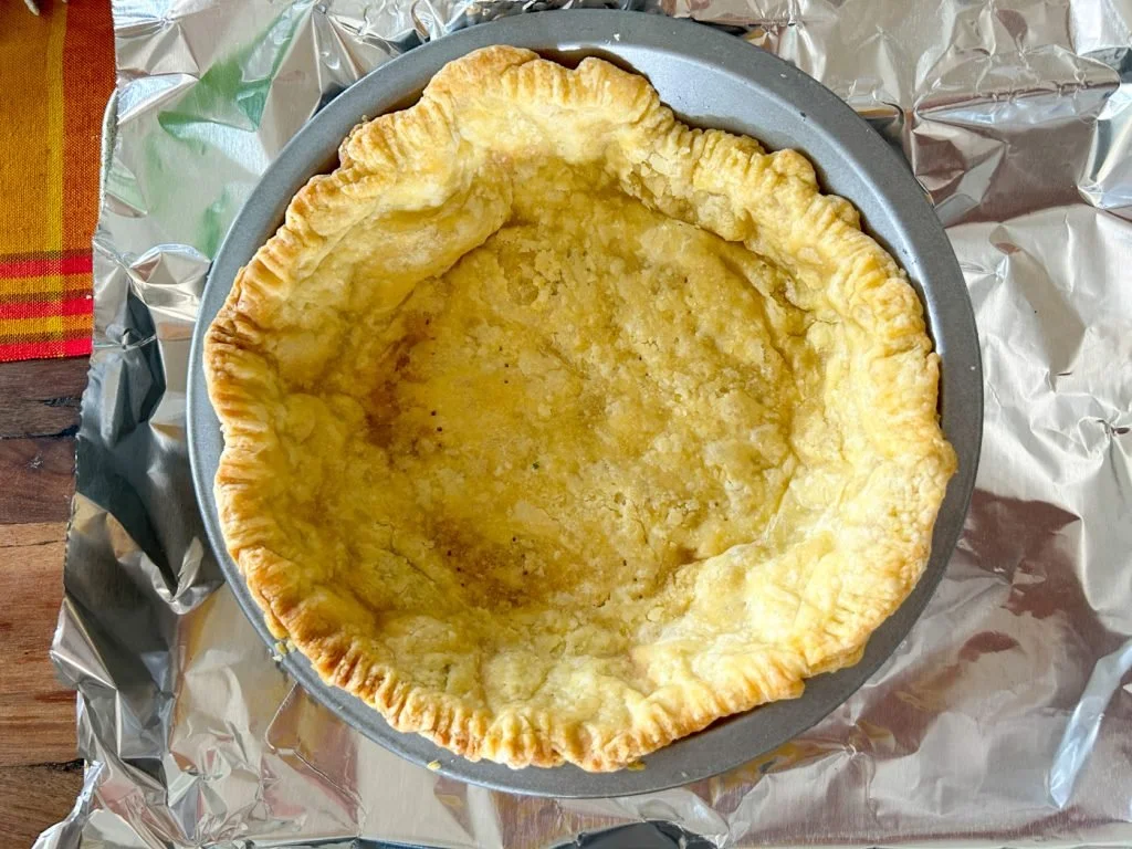 To blind-bake, dock the bottom of the crust with the tines of a fork, line the shell with parchment or foil, and fill with dried beans, rice, or pie weights. Bake for 15 to 20 minutes, until the edges of the crust are lightly golden brown. Carefully remove the parchment and weights (you can use them again!) and continue baking for another 5 minutes, until the crust is golden brown. Let cool completely before filling.