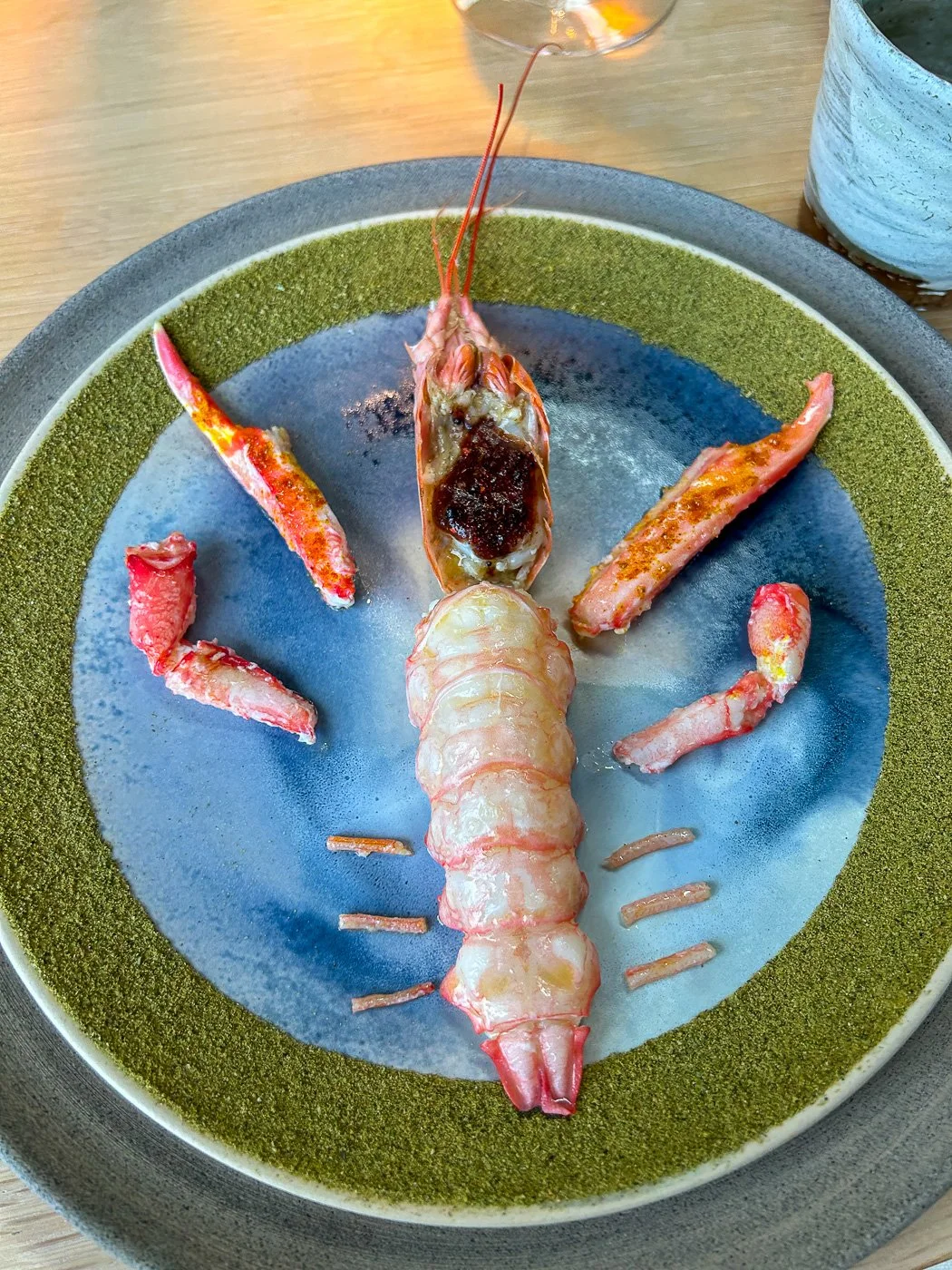 When we opened it, standing there to greet us was the entire staff of the restaurant. It was such a shocking moment, Craig said: “I feel like I should give a speech.” Everyone laughed and then as we were led past the kitchen into the dining room, all of the chefs — what felt like twenty of them — were lined up to greet us and say hello. It was kind of overwhelming, seeing all these eager, expectant faces of the people who were about to pull apart crustaceans with tweezers just for our gastronomical pleasure.
