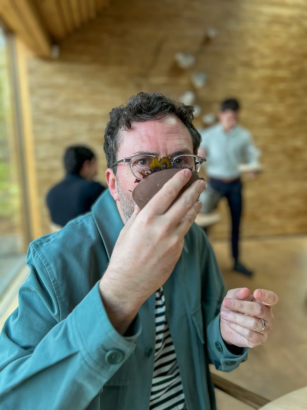 Koji, it turns out, is the product of soya beans that have been inoculated with a fermentation culture, Aspergillus oryzae — aka: moldy soy beans. They brought a whole tray of white mold for us to examine and enjoy while chewing the raw, translucent cephalopod. This may have also been the moment that Craig was presented with an iced tea made out of blossoms that were digested by beetles and then pooped out. They brought out some of the poop tea for us to sniff.