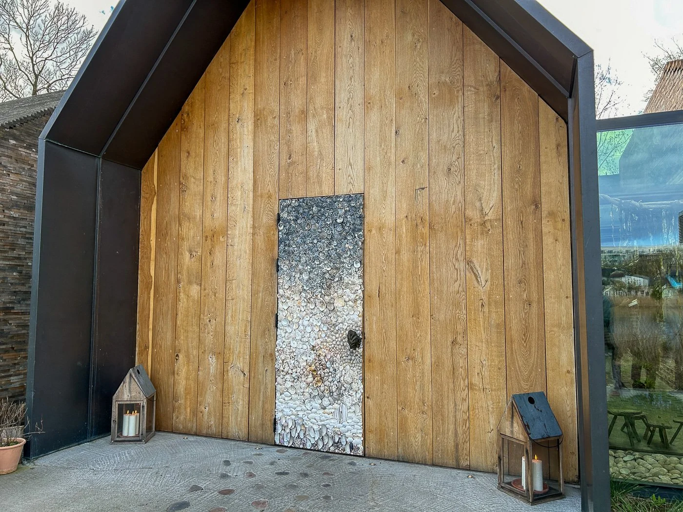 When it was time for the actual dinner, we were sent form the greenhouse to the main structure that you see above with the most gorgeous, seashell-covered door. It felt like the gateway to Narnia or some kind of mermaid kingdom.