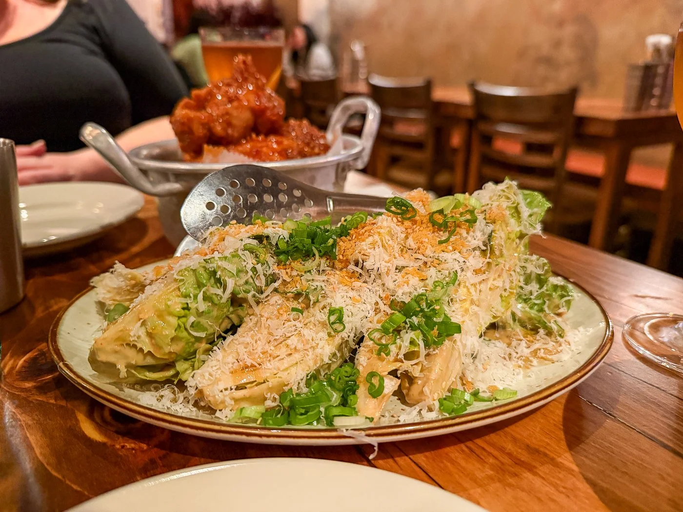 It wasn’t clear, out of the gate, how good the food at Golden Hof would be. But holy moly, was it good. We positively devoured this Ssamjang Caesar Salad with baby gem, sesame, parmesan, and ssamjang caesar dessing.
