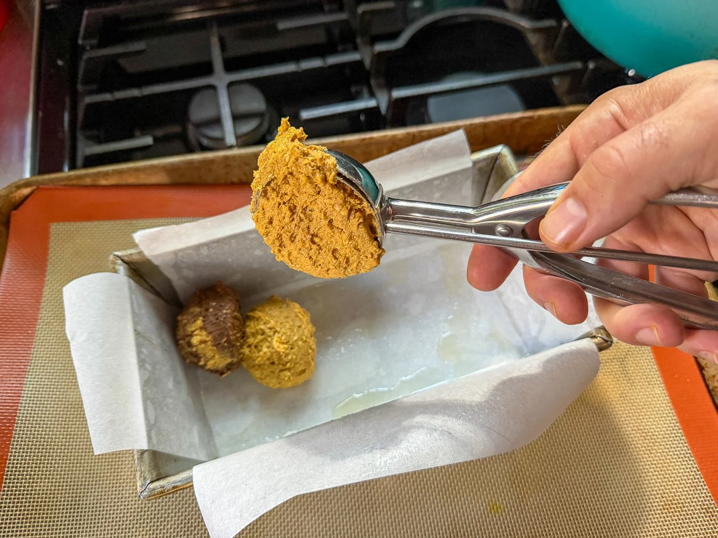 Two: you divide the batter and add cocoa to half of it, which allows you to marble the bread (hence the named Marbled Pumpkin Bread).