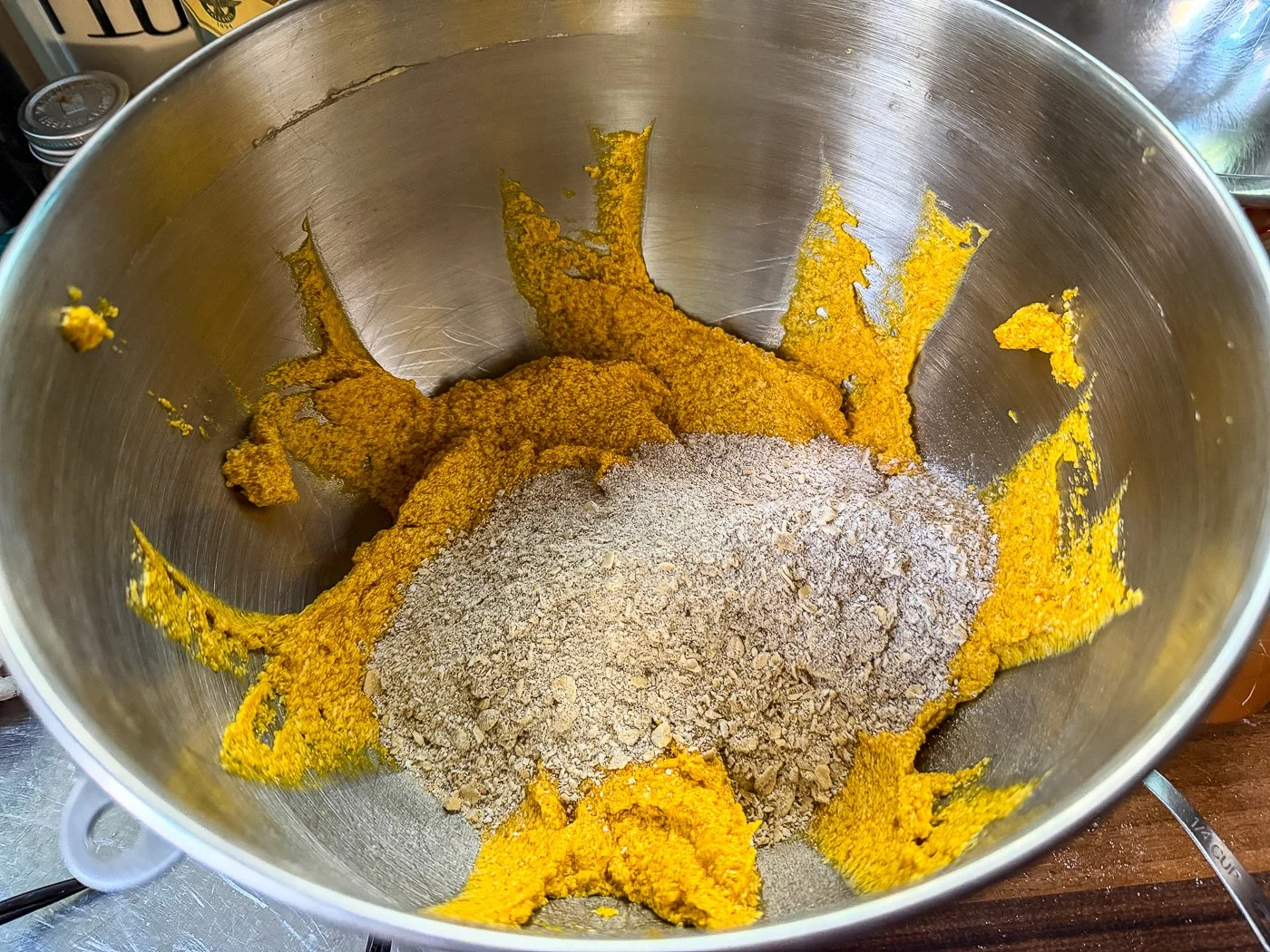 Add the pumpkin purée and beat until mixture is completely uniform.