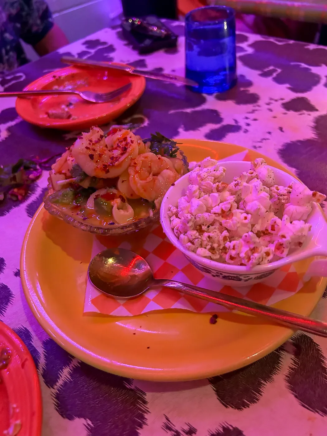 These pictures won’t do it justice. Let’s put it this way: if someone put a magic spell on Chappell Roan and turned her into a restaurant, it would be this place. Picture fake jellyfish bopping around a tank, disco balls, porn on the TV, neon signs, and eclectic ingredients, and you’ll get the idea.