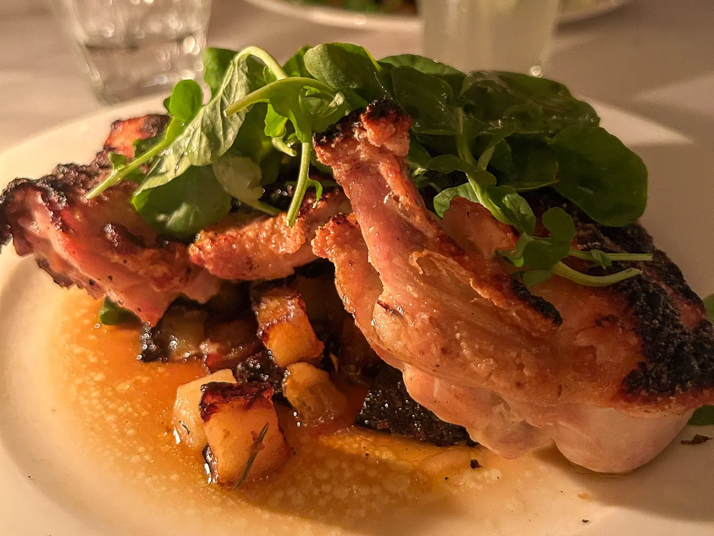 The vibe at Café Mutton is the opposite of stuffy. There’s a looseness and a playfulness to things. When I knocked over a glass of water, I went to the bartender who handed me a rag to clean it up myself. I got a kick out of that.