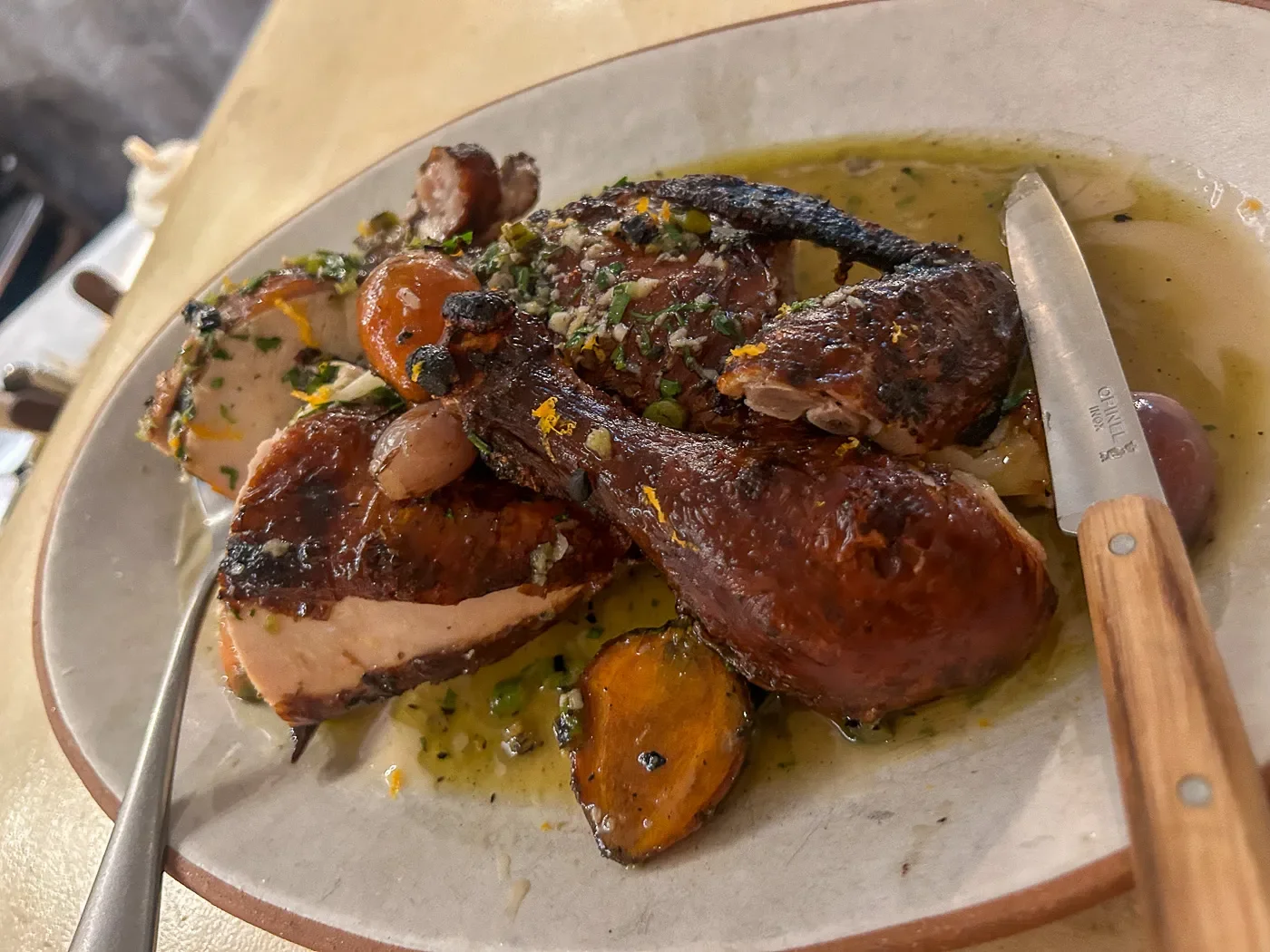 And the chicken (lead pic) was superb: way better than any grilled chicken I’ve attempted at home. The way that they get the outside so crisp and keep the inside moist… they should teach a seminar.