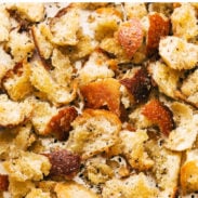 So much better than buying them in store. I had bought them the other week as we just had our Thanksgiving, and they have all kinds of stuff in them that weren’t necessary. I ended up returning them and doing pretty much as this recipe lays out and they turned out amazing! They aren’t as uniform as buying them packaged, but that’s the price you pay for knowing what’s in your croutons.